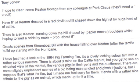 This email above contains some specific client demands from Tony Jones. It includes what he likes in the archive footage and other videos such as the Buster Keaton video.